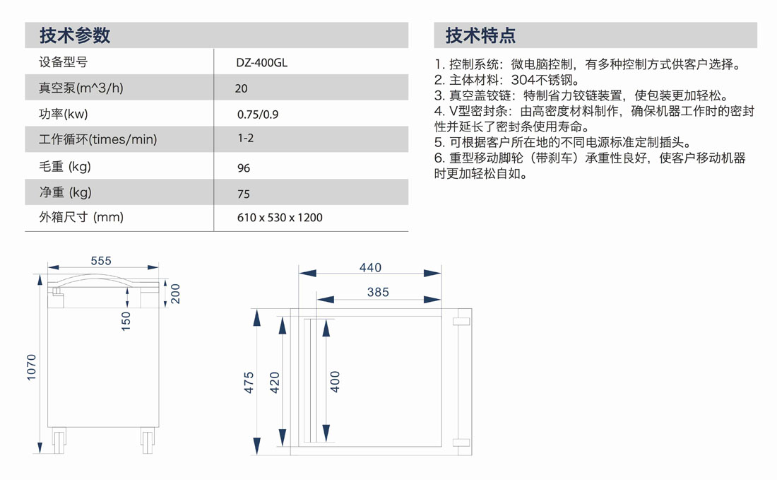 DZ-400GL單室真空包裝機